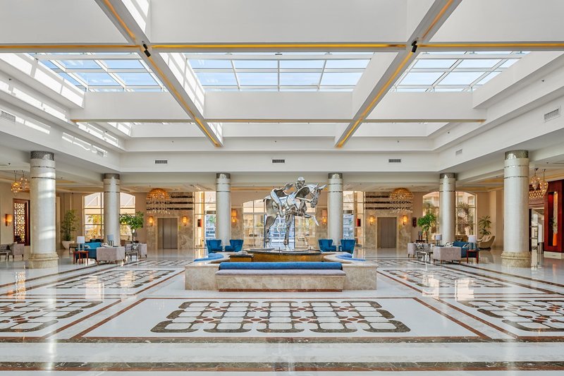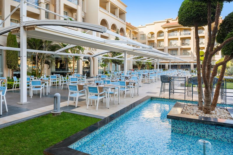 Ausstattung: Die Ferienanlage besteht aus 473 Zimmern, verteilt auf ein Hauptgebäude und 2 Seitenflügel. Die Anlage verfügt über eine geräumige, freundliche Empfangshalle mit Rezeption, mehrere Bars und Geschäfte. Für das leibliche Wohl sorgen ein chinesisches Restaurant "L'Asiatique", ein Á-la-Carte-Restaurant "Wow" (1x pro Aufenthalt inklusive), ein italienisches Restaurant "Soprano", ein orientalisches Restaurant "Saffron" sowie eine Strandbar mit Snacks. Im Außenbereich befindet sich zwischen Haupthaus und Strand eine großzügige Poollandschaft mit 4 Kinderpools (im Winter beheizbar) mit Wasserrutschen und 2 Erwachsenenpools (einer im Winter beheizbar). Liegen, Sonnenschirme und Badetücher sind am Pool und Strand inklusive.