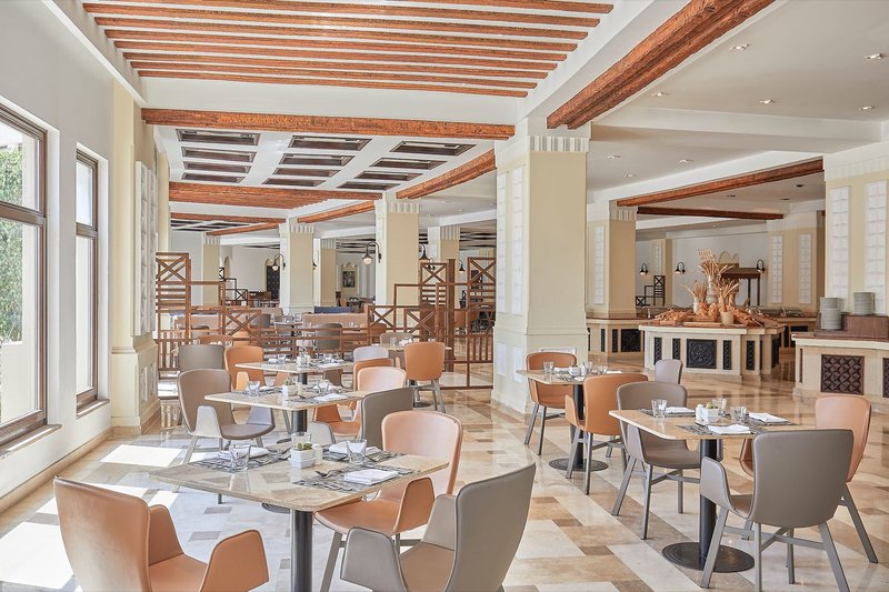 Felszereltség: A tágas szálloda több mint 400 modern lakosztállyal rendelkezik, amelyek többsége közvetlen kilátást nyújt a tengerre. Egy luxus és nyitott terű előcsarnok várja Önt recepcióval, ülősarokkal és két lobbibárral. A komplexum kültéri területén több mint 5000 m³-es, kiterjedt medencepark található, amelyen egy 400 méter hosszú, sodrófolyosó folyik keresztül, valamint egy fűtött tengervizes medence és egy jakuzzi-sziget (16 éves kortól). A vendégek ingyenesen használhatják a napozóágyakat, törölközőket és napernyőket a medencénél és a strandon. Öt különböző bár és hét változatos étterem gondoskodik a kulináris élvezetekről. A pihenéshez egy 1000 m²-es Thalasso Spa és Wellness Központ is rendelkezésre áll. A házhoz közvetlenül tartozó 9 lyukú par 3-as golfpálya vonzó tájával és változatos vízi akadályaival lenyűgöző. A szálloda saját Ilios búvárklubja/vízi központja búvárokat és vízi sportok szerelmeseit várja. A testvérszálloda, a "Steigenberger Aqua Magic" víziparkja minden korosztály számára benne van az árban (snackek és helyi italok benne foglaltatnak az árban). Korlátlan Wi-Fi áll rendelkezésre a szálláshely egész területén.