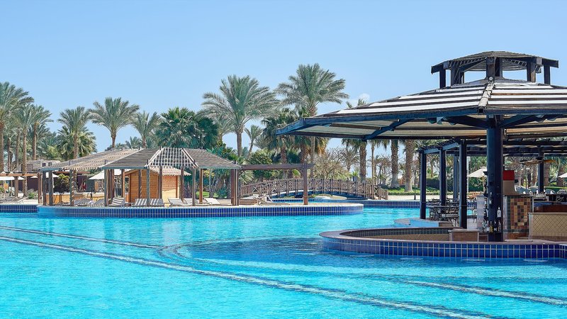 Ausstattung: Das großzügig gestaltete Hotel ist mit über 400 modernen Suiten ausgestattet, wovon die Mehrheit über einen direkten Meerblick verfügt. Sie erwartet eine luxuriöse und offen gestaltete Empfangshalle mit einer Rezeption, Sitzgelegenheiten sowie zwei Lobbybars. Im Außenbereich der Anlage befindet sich eine ausgedehnte Poollandschaft auf über 5.000m³ mit einem über 400 Meter langen "Lazy River", der durch die Anlage führt, sowie einem Meerwasserpool (beheizbar) und einer "Jacuzzi Island" (ab 16 Jahren). Am Pool und am Strand stehen den Gästen Liegen, Handtücher und Sonnenschirme kostenfrei zur Verfügung. Eine Auswahl an fünf verschiedenen Bars und sieben abwechslungsreichen Restaurants sorgt für den kulinarischen Genuss. Für die nötige Entspannung steht Ihnen ein 1000 m² großes Thalasso Spa- und Wellnesscenter zur Verfügung. Der direkt zum Haus gehörende 9-Loch Par-3-Golfplatz begeistert mit einer ansprechenden Landschaft und verschiedenen Wasserhindernissen. Auf Taucher und Wassersportler wartet der hoteleigene Ilios Dive Club/Aqua Center. Für Groß und Klein ist der Aquapark des Schwesternhotels "Steigenberger Aqua Magic", inklusive (Snacks und lokale Getränke inklusive). Unbegrenztes Wi-Fi ist in der gesamten Anlage nutzbar.
