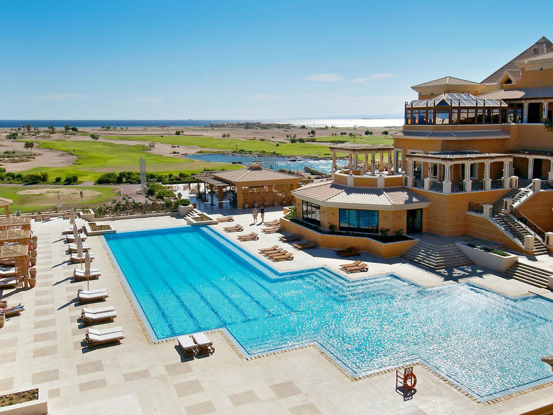 Lage & Umgebung In Soma Bay, auf einer Anhöhe, mit Blick über den 18-Loch-Golfplatz auf das Meer gelegen. Zum hoteleigenen Strandabschnitt neben dem Sheraton Soma Bay fährt ein regelmäßiger Shuttlebus ohne Gebühr (Fahrtzeit ca. 3 Minuten). Das Hausriff auf der Nordostseite lädt in direkter Ufernähe zum Schnorcheln und Tauchen ein.