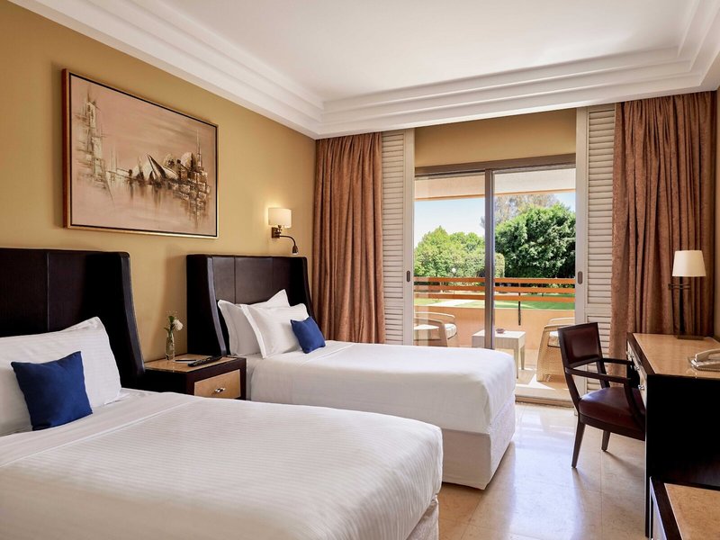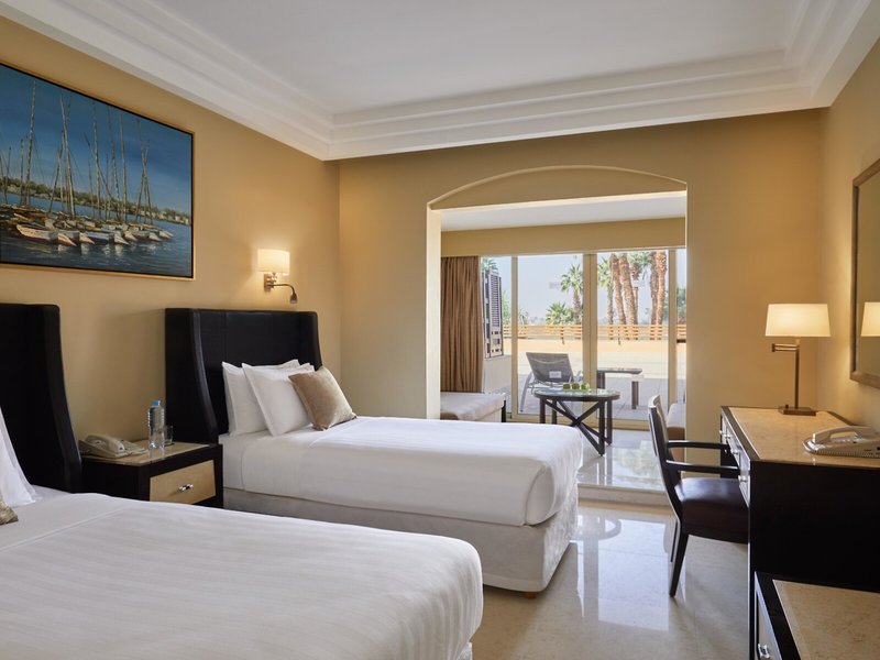 - DBL Deluxe Nile View Room (DZX3), Doppelzimmer, Nichtraucherzimmer, im Hauptgebäude, Flussseite, Flussblick, ca. 30 m², letzte Komplettrenovierung 2019, letzte Teilrenovierung 2019, Gesamtanzahl der Räume in diesem Zimmertyp: 1, Aufteilung wie folgt: kombiniertes Wohn-/Schlafzimmer, 2 Doppelbetten (100x200cm), Moskitonetz, Klimaanlage: ohne Gebühr, individuell regelbar, Heizung: individuell regelbar, Fußboden: Fliesenboden, Safe: ohne Gebühr, Schreibtisch, Kaffee-/Teezubereiter, Wasserkocher, Minibar: gegen Gebühr, Softdrinks: gegen Gebühr, Wasser: ohne Gebühr, alkoholische Getränke: gegen Gebühr, Telefon, Internet: WLAN/WiFi: ohne Gebühr, Fernseher: Flatscreen, Roomservice: täglich 24 Stunden, gegen Gebühr, Reinigungsservice: täglich, ohne Gebühr, Dusche, Regendusche, Badewanne, WC, Föhn, Balkon: mit Sitzgelegenheit, Balkon oder Terrasse