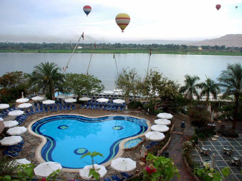Lage & Umgebung Das Hotel der bekannten Hotelgruppe liegt direkt am Nil und bietet einen eigenen Bootsanleger. Ein idealer Standort, um die vielen Sehenswürdigkeiten in Luxor und der näheren Umgebung zu erreichen. Das Tal der Könige und die berühmten Pharaonengräber liegen auf der anderen Seite des Flusses. Entfernung zum Flughafen Luxor: ca. 13 km.