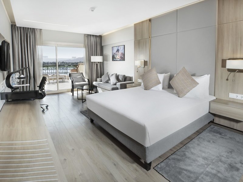 - Executive szoba - Nílusra néző (DZX5), kétágyas szoba, folyó felőli, folyóra néző, medencére néző, kb. 40 m², összesen szoba ebben a szobatípusban: 1, 1 king-size ágy, légkondicionálás: ingyenes, egyénileg állítható, hideg, meleg, fűtés: egyénileg állítható, padló: szőnyeg, széf: térítésmentes, kávé/teafőző, vízforraló, minibár: felár ellenében, üdítők: felár, víz: felár ellenében, alkoholos italok: felár, harapnivalók: felár ellenében, telefon, Internet: WiFi /WiFi: térítés ellenében, televízió: síkképernyős, műholdas TV, szobaszerviz: térítés ellenében, takarítás: ingyenes, fürdőkád vagy zuhanyzó, WC, hajszárító, erkély: ülés