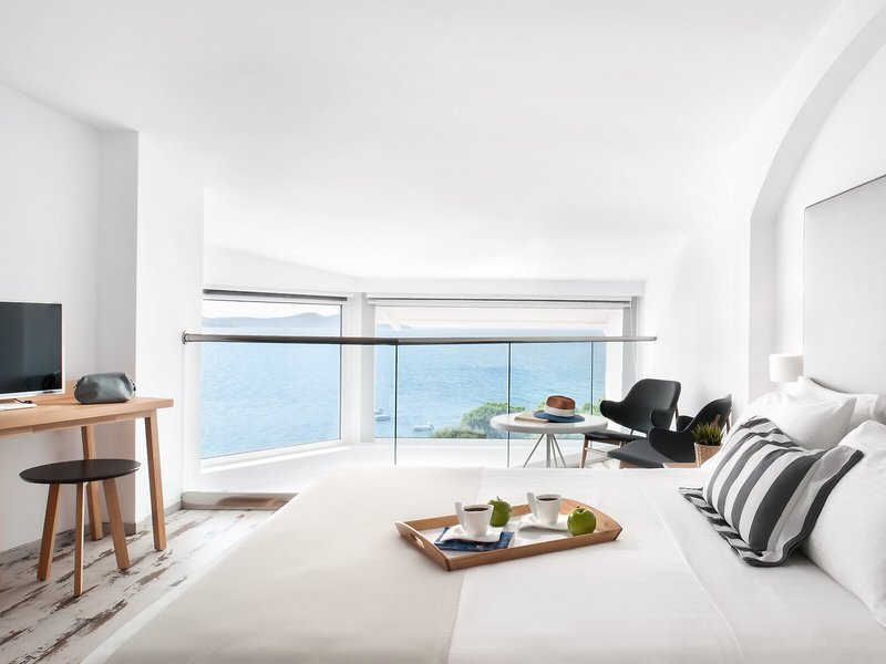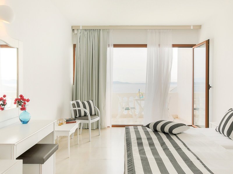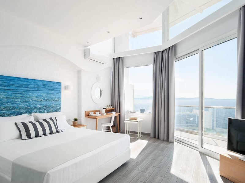 So wohnen Sie: In den Zimmern gibt es eine Klimaanlage. Die Gäste können den Meerblick von Balkon oder Terrasse genießen. Die Zimmer verfügen über ein Doppelbett, ein Kingsize-Bett oder ein Sofabett. Zustellbetten können angefordert werden. Außerdem sind ein Safe und eine Minibar verfügbar. Auch ein Kühlschrank und eine Tee-/Kaffeemaschine sind vorhanden. Ein Bügelset ist für den zusätzlichen Komfort der Gäste verfügbar. Darüber hinaus sind ein Telefon, ein TV-Gerät, eine Stereoanlage, ein DVD-Player und WiFi (ohne Gebühr) vorhanden. Zu den Vorzügen der Zimmer gehören Hausschuhe. Die Badezimmer sind ausgestattet mit einer Dusche und einer Badewanne. Für den täglichen Gebrauch stehen ein Haartrockner, Bademäntel und ein Telefon zur Verfügung. Das Hotel bietet Familien- und Nichtraucherzimmer.