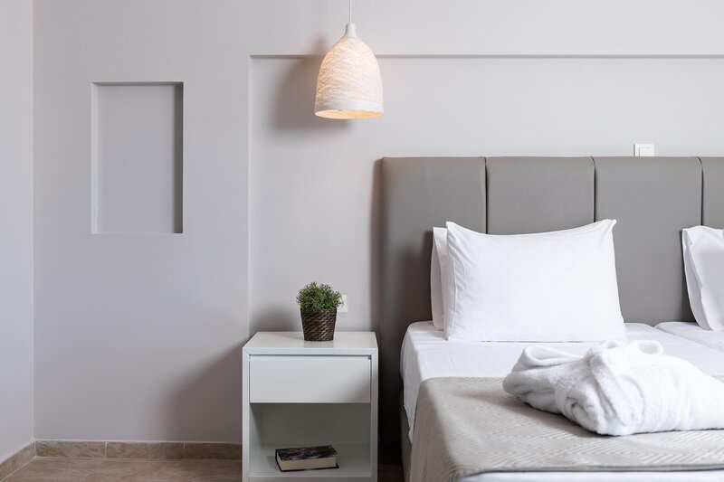 A kellemesen berendezett standard szobák fürdőszobával/WC-vel, hajszárítóval, légkondicionálóval, telefonnal, műholdas TV-vel, hűtőszekrénnyel vagy minibárral (kérésre, térítés ellenében), bérelhető széffel, kávé/teafőzővel, erkéllyel vagy terasszal és tengerrel vagy medencével felszereltek. vagy a kertre néz. A gazdaságos szobák csak korlátozottan foglalhatók kertre néző kilátással, egyébként azonos felszereltséggel. A családi szobák tágasabbak, felszereltségük megegyezik a standard szobákkal, és erkélyesek. A kertre néző junior lakosztályok a standard szobákkal megegyező felszereltséggel, nagy nappalival és mozaik káddal rendelkeznek.