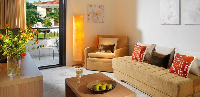 Die angenehm eingerichteten Appartements verfügen über ein separates Wohn- und Schlafzimmer, Küche, Bad/WC, Klimaanlage, Sat.-TV, Telefon, Safe, WLAN und Balkon oder Terrasse. Die Studios verfügen bei sonst gleicher Ausstattung über einen kombinierten Wohn-/Schlafbereich.