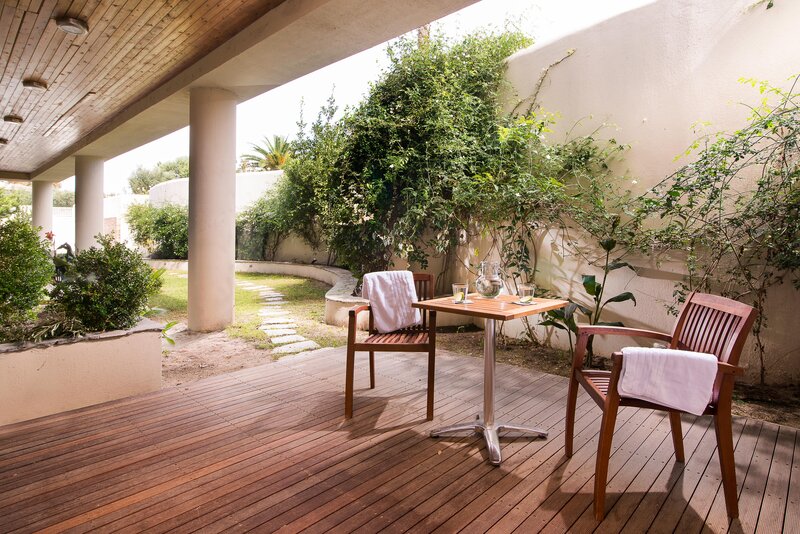 deluxe kétágyas szobák zuhanyzóval/WC-vel, hajszárítóval, franciaággyal vagy két egyszemélyes ággyal, légkondicionálóval, fűtéssel, műholdas TV-vel, telefonnal, bérelhető széffel, mini hűtőszekrénnyel, tea/kávéfőzővel, ülősarokkal és erkéllyel vagy terasszal rendelkeznek. Ezek a tengerre vagy a szárazföldre néző kilátással foglalhatók. Az executive lakosztályok tágasabbak, kanapéval ellátott nappalival, valamint kertre néző erkéllyel vagy terasszal rendelkeznek. Ezek oldalsó tengerre néző kilátással is foglalhatók. A deluxe lakosztályokban káddal és zuhanyzóval/WC-vel ellátott fürdőszoba, külön hálószoba king-size ággyal, nappali két kanapéval, 2 műholdas TV és erkély vagy terasz, részleges kilátással a tengerre.