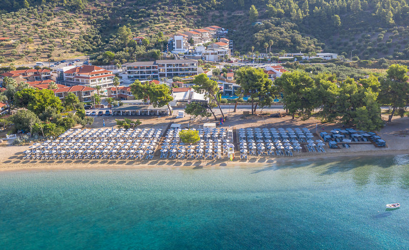 Rund 30 m vom Sand-/Kiesstrand entfernt gelegenes Hotel. Am Strand sind Sonnenliegen und Sonnenschirme gegen Gebühr verfügbar. Zum touristischen Zentrum sind es ca. 5 km. Die Stadt Neos Marmaras ist ca. 6 km entfernt (Nikiti ca. 11 km, Poligiros ca. 56 km). Ein Supermarkt ist nach ca. 5 km zu erreichen. Die nächstgelegenen Bars und Restaurants erreichen Sie ebenfalls nach rund 5 km. Der Flughafen Thessaloniki ist ca. 102 km entfernt.