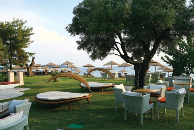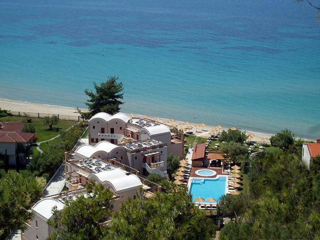 Die Hotelanlage befindet sich in Fourka, an der Ostküste der Halbinsel Kassandra. Den Sandstrand erreichen Sie in wenigen Minuten. Die Entfernung zum Flughafen Thessaloniki beträgt ca. 90 km.