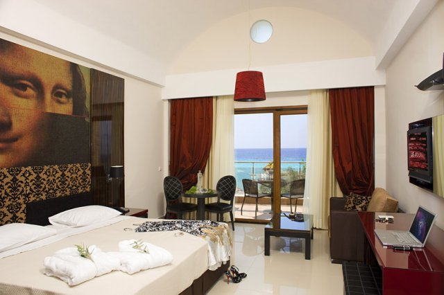 stílusos deluxe szobák oldalsó tengerre néző kilátással felszereltek fürdőkáddal/WC-vel, hajszárítóval, fürdőköpennyel, papuccsal, légkondicionálóval, telefonnal, műholdas TV-vel, minibárral (kérésre és térítés ellenében), bérelhető széffel, WiFi-vel és erkéllyel vagy terasszal. A kertre néző junior lakosztály külön hálószobával is rendelkezik.