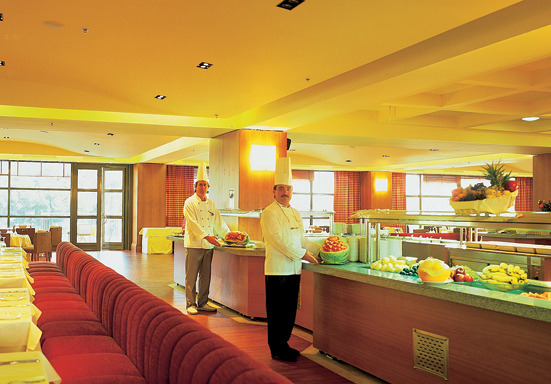 Halbpension oder Vollpension buchbar. Alle Mahlzeiten werden in Buffetform angeboten.