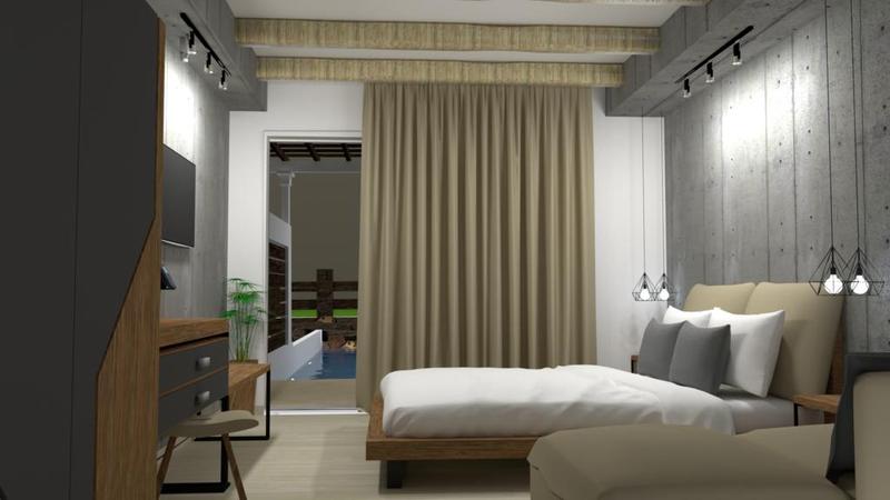 Junior Suiten mit gleicher Ausstattung, ohne separtem Schlafzimmer, mit privatem Pool.
