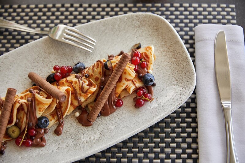 A reggelit, az ebédet és a vacsorát svédasztalos rendszerben szolgálják fel. Este saláták, desszertek és előételek svédasztalos formában teszik teljessé a gasztronómiai kínálatot. Megfelelő ruházatot kérünk az étteremben.