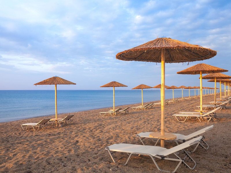 - Kalives Beach: homokos, nyugágyak, napernyők