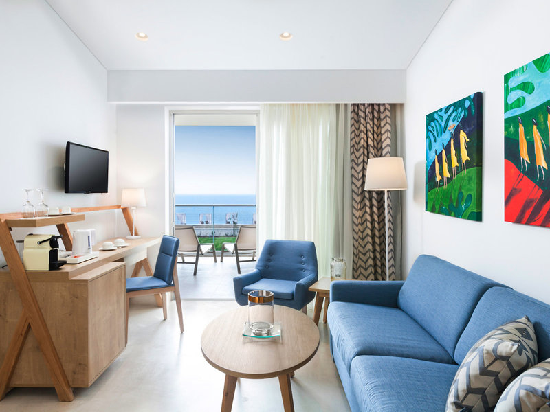 - WORKATION Junior Suite (JSG1), Junior Suite, Nemdohányzó szoba, Minimum életkor a szobában: 16 év, Kertre néző, kb. 30 m², Szobák száma ebben a szobatípusban: 1, 2 egyszemélyes ágy, 1 kanapéágy, Szúnyogháló, Légkondicionálás: ingyenes, egyénileg szabályozható, hideg, meleg, Padló: járólapozott padló, Széf: ingyenes, Kanapé, Íróasztal, Kávé-/teafőző, Vízforraló, Minibár: ingyenes, Minibár újratöltés: hetente többször, Internet: Wi-Fi: ingyenes, TV: síkképernyős, Szobaszerviz: 10:00 - 21:45, felár ellenében, Takarítás: naponta, ingyenes, Zuhanyzó, WC, Fürdőköpeny: ingyenes, Papucs: ingyenes, Hajszárító, Erkély: ülőgarnitúrával