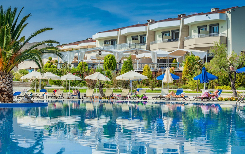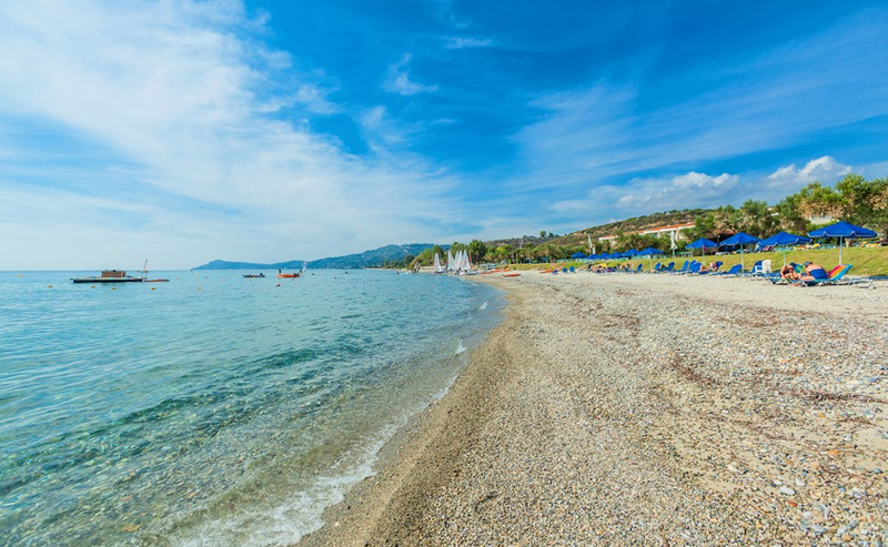 Das Luxusresort befindet sich im malerischen und ruhigen Ort Nea Skioni am Sand-/Kiesstrand. Das Ortszentrum mit Einkaufs- und Unterhaltungsmöglichkeiten sowie Restaurants und Tavernen erreichen Sie nach ca. 2 km. Zum Flughafen von Thessaloniki sind es ca. 90 km.