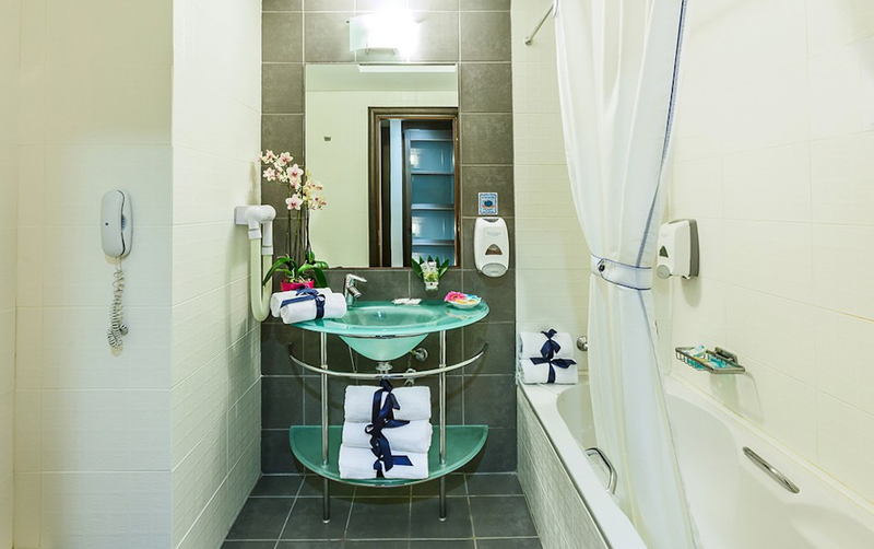 modern standard szobák káddal vagy zuhanyzóval/WC-vel, hajszárítóval, légkondicionálóval, WiFi-vel, telefonnal, műholdas LCD TV-vel, minibárral, széffel és erkéllyel vagy terasszal rendelkeznek. Ezek tengerre néző kilátással is foglalhatók. A tágasabb junior lakosztályok a földszinten találhatók, és kombinált hálószoba-nappalival rendelkeznek, egyébként azonos berendezéssel. A DeLuxe lakosztályok 2 külön szobával rendelkeznek.