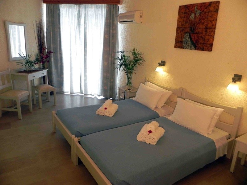 kétszintes épületben elhelyezkedő, összesen 67 szobával rendelkező szállodakomplexum 24 órás recepcióval/lobbyval, WLAN-nal (ingyenes)/Internetsarokkal (térítés ellenében), ajándékbolttal, étterem, 2 bár nagy terasszal, TV-szoba, autókölcsönző és több parkolóhely (ingyenes). A gondozott kertben gyönyörű medence és tágas napozóterasz található. A nyugágyak és napernyők ingyenesen állnak rendelkezésre a medencénél és a strandon térítés ellenében.