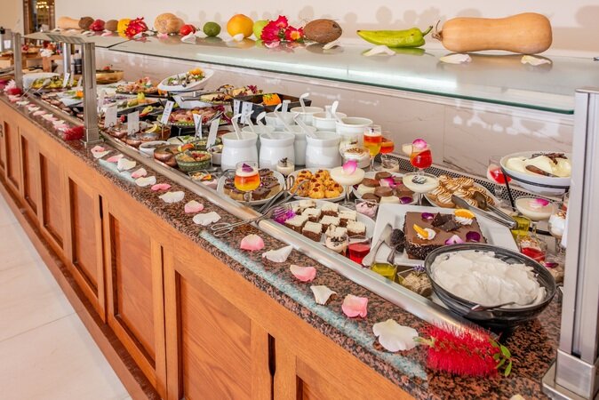 Az All Inclusive tartalmazza a svédasztalos reggelit, ebédet és vacsorát, különféle harapnivalókat és kávét/teát süteményekkel/péksüteményekkel meghatározott időpontokban. Az ár 10:00 és éjfél között válogatott helyi alkoholos és alkoholmentes italokat is tartalmaz.