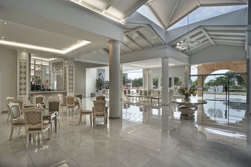 Ausstattung: Das Hotel verfügt über insgesamt 92 Zimmer und Suiten, welche sich auf mehrere Gebäude verteilen. Die Rezeption sowie die Hauptrestaurants "Elia" und "Ammos" befinden sich im benachbarten Schwesterhotel Sandy Beach (CFU083). Wi-Fi wird innerhalb der gesamten Hotelanlage kostenfrei angeboten.