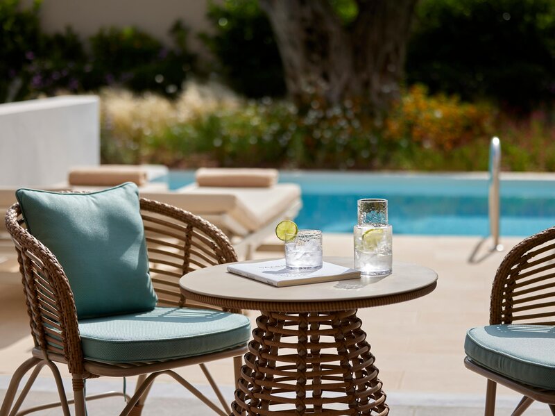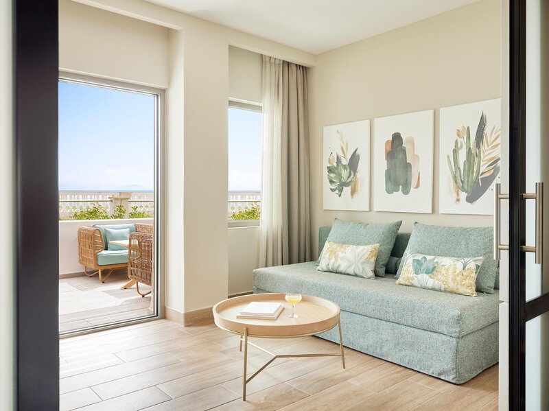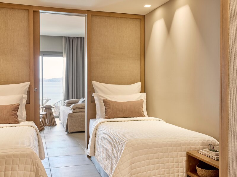 kétágyas szobákban fürdőszoba káddal vagy zuhanyzóval/WC, hajszárító, légkondicionálás, telefon, műholdas TV, WiFi (ingyenes), kávé/teafőző, hűtőszekrény, bérelhető széf és erkély vagy terasz található asztallal és székekkel. Ezek a tengerre vagy a kertre néző kilátással is foglalhatók. Ezek opcionálisan egy főre is foglalhatók A családi szobák felszereltsége megegyezik a kétágyas szobákkal, nagyobbak és nappalival rendelkeznek. A lakosztályok nagyobbak, mint a családi szobák, és saját fürdőszobával és ugyanazokkal a kényelmi felszerelésekkel rendelkeznek.