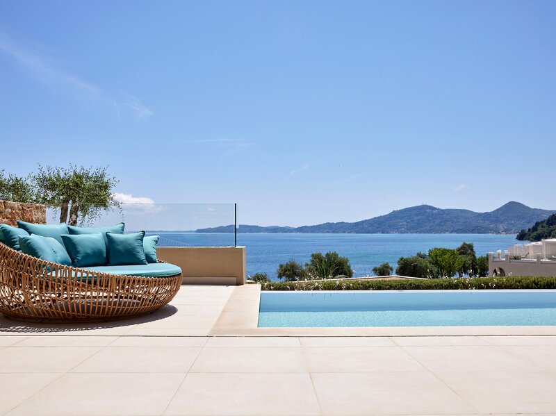 A görögországi Korfu Agios Ioannis Peristeron délkeleti partján található, buja kertekben. A számos vásárlási és szórakozási lehetőséget kínáló tengerparti sétány, valamint éttermek és bárok körülbelül 200 m-re érhetők el, a tömegközlekedés szintén körülbelül 200 m-re található. Korfu repülőtere körülbelül 17 km-re található.