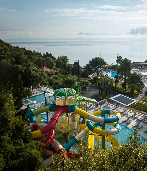 Gyerekklub és tinik klub (6x/hét), baba/gyermekfelügyelet (térítés ellenében), szabadtéri játszóeszközök gyerekeknek, gyermekbarát büfé és gyermekétkeztetés.