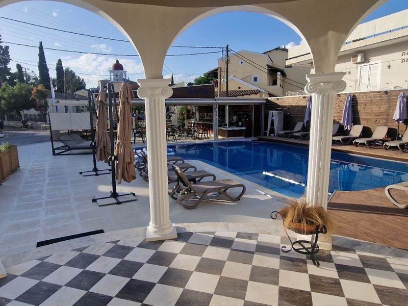 Lage & Umgebung Das Hotel befindet sich der lebhaften Gegend von Gouvia. Nach einem kurzen Spatziergang vom Hotel gelangen Sie schon am Gouvia Strand. sobald Sie das Hotel verlassen finden Sie zahlreiche Bars, Restaurants, Clubs und mehrere Geschäfte in der Gegend.
