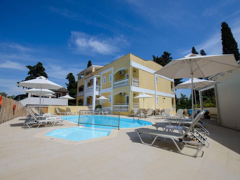 Lage & Umgebung Das Hotel liegt in einem ruhigen Viertel von Kassiopi, lediglich ca. 300 m vom touristischen Zentrum der Stadt entfernt. Der Strand Avlaki ist nach etwa einem Kilometer erreicht.