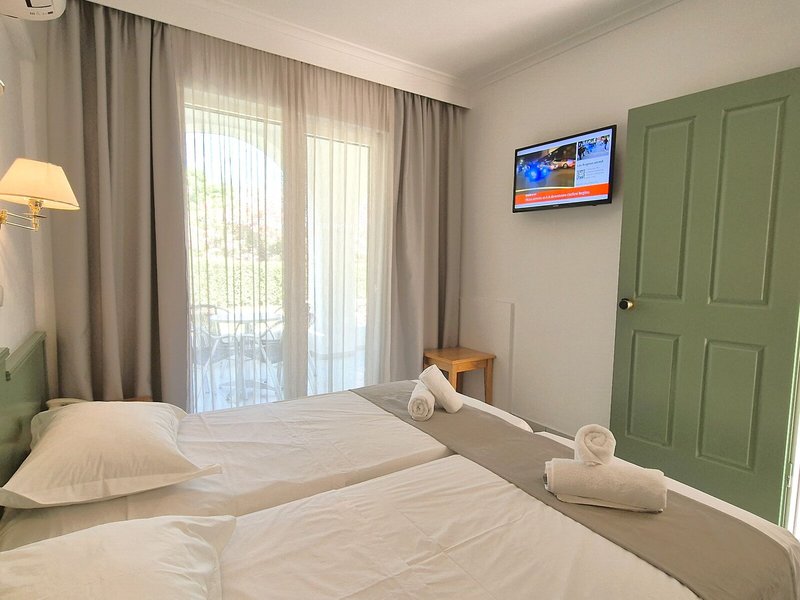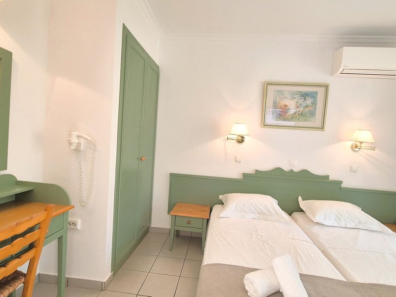 zus. Informationen: Touristensteuer Griechenland erhebt nach aktuellem Stand eine Klimasteuer (die sogenannte "Abgabe für Klimaresilienz") pro Zimmer pro Nacht, zahlbar vor Ort im Hotel, Unterkunft: