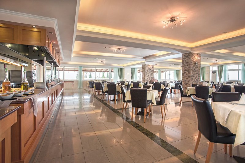 All Inclusive: Frühstück (7-10 Uhr), Mittag- (12:30-14:30 Uhr) und Abendessen (18:30-21:30 Uhr) in Buffetform. Von 18:30-19 Uhr ist der Eintritt für Familien mit Kindern vorgesehen. Alternativ Abendessen im Themenrestaurant (18:30-21:30 Uhr-Reservierung erforderlich). Snacks und Eiscreme sowie Kuchen von 11-18 Uhr. Alkoholfreie Getränke (z. B. Kaffee, Tee, Säfte) von 10-23 Uhr inklusive, Fassbier und Hauswein von 11-23 Uhr, weitere ausgewählte lokale alkoholische Getränke wie Brandy, Vodka, Gin, Rum, Tequila, Whisky und Ouzo von 17-23 Uhr inbegriffen. Es werden frische Produkte von einheimischen Bauern verwendet. Ebenfalls ist eine große Auswahl an frischen Früchten, die täglich in örtlichen Obstgärten gepflückt werden vorhanden. Die servierten Marmeladen und Frühstücksriegel sind Hausgemacht.