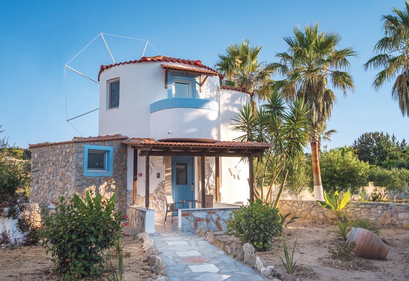Windmühle: Eine einmalige Unterbringung bieten die neu errichteten Juniorsuiten, welche sich in kleinen Windmühlen befinden. Die rund gebauten Gebäude bieten jeweils eine Unterbringung, verteilt auf 2 Etagen und bestehen aus einem Schlafzimmer in der oberen Etage (Doppelbett oder zwei Einzelbetten), einem Wohn-/Schlafraum im Erdgeschoss mit Sofa-/Sesselbett und verfügen über walk in Dusche mit WC, Föhn, Klimaanlage auf beiden Etagen, Kühlschrank, Slipper, Pflegeprodukte, Föhn, Safe, Kaffee-/Teezubereiter, Nespresso Maschine mit Kapseln, Sat.-TV, Telefon, möblierter Balkon und Terrasse. Bei Anreise erhalten unsere Gäste eine kleine Flasche Wasser aufs Zimmer (WM).