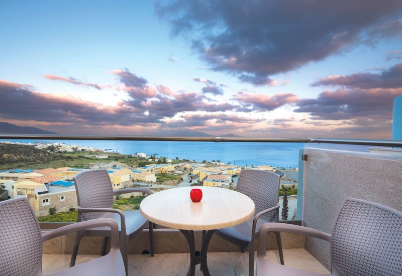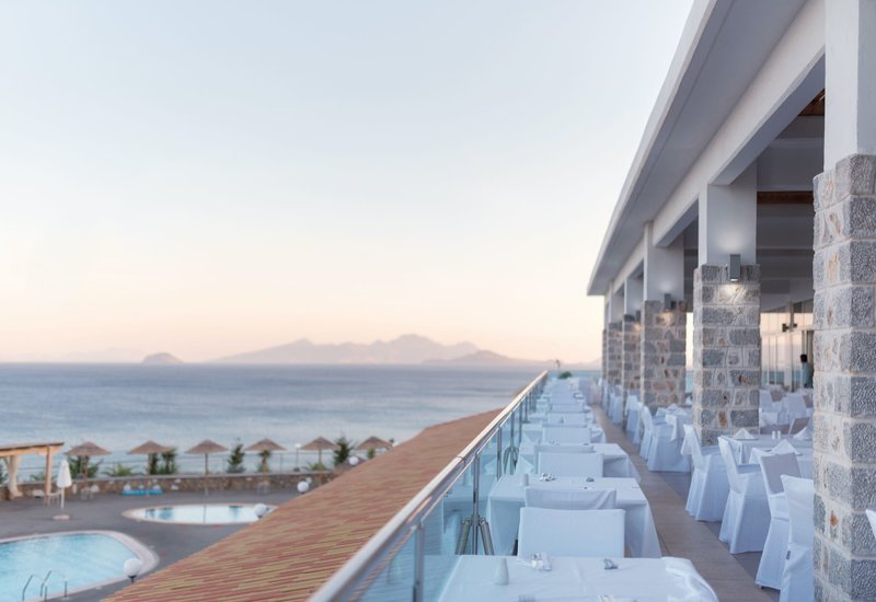 All Inclusive Plus: Frühstück (7-10 Uhr), Mittag- (12:30-14:30 Uhr) und Abendessen (18:30-21:30 Uhr) werden in den Buffetrestaurants angeboten. Wahlweise kann ein Spätaufsteherfrühstück (10-11 Uhr) oder das Abendessen im À-la-carte-Restaurant (Reservierung notwendig) eingenommen werden. In der Zeit von 12-14 Uhr wird ein leichtes Mittagessen im Restaurant "Azure" angeboten. In der Zeit von 10-17 Uhr werden verschiedene kalte Snacks, Eis (10-22 Uhr an der "Serenity" und "Seabreeze-Poolbar"), Kaffee/Tee (verschiedene Kaffeesorten wie Filterkaffee, Espresso, Cappuccino, Latte Macchiato, griech. Kaffee, Frappé, Fredo Espresso/Cappuccino etc.) an der Poolbar angeboten. Lokale und internationale alkoholfreie und alkoholische Markengetränke wie Whiskey, Gin, Vodka, Rum, Gin, Rum, Brandy, Tequila, Longdrinks, verschiedene Cocktails, 2 verschiedene Marken von Flaschen- und Fassbier, 2 verschiedene Weinsorten, Hauswein, Softdrinks, Kaffee/Tee und Wasser sind von 10-0 Uhr an der jeweils geöffneten Bar inklusive.
