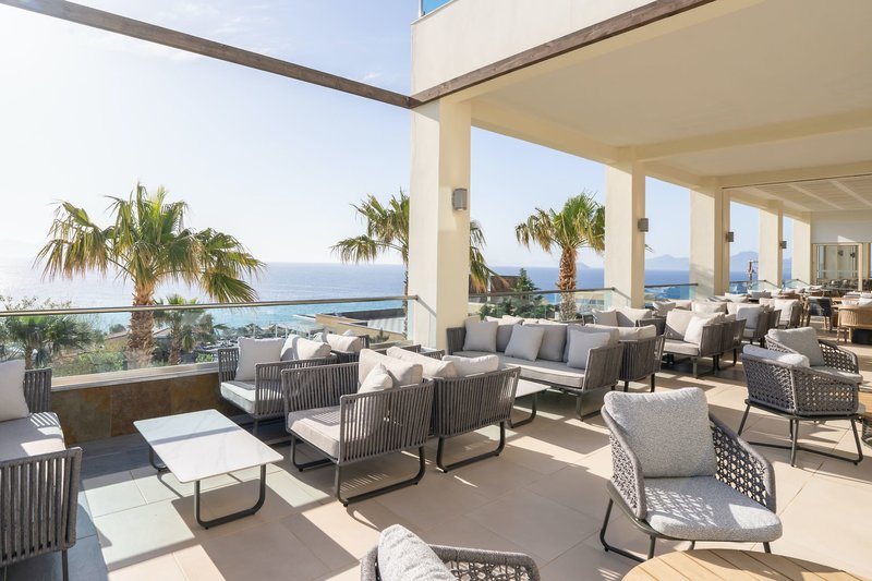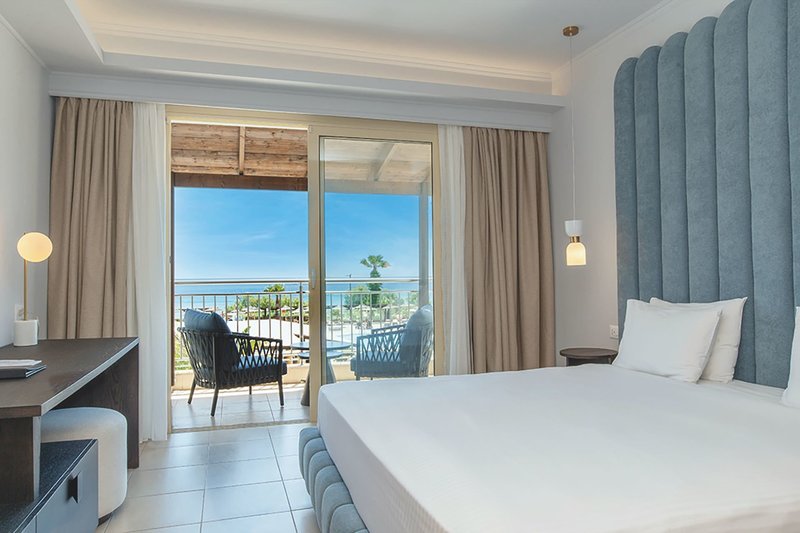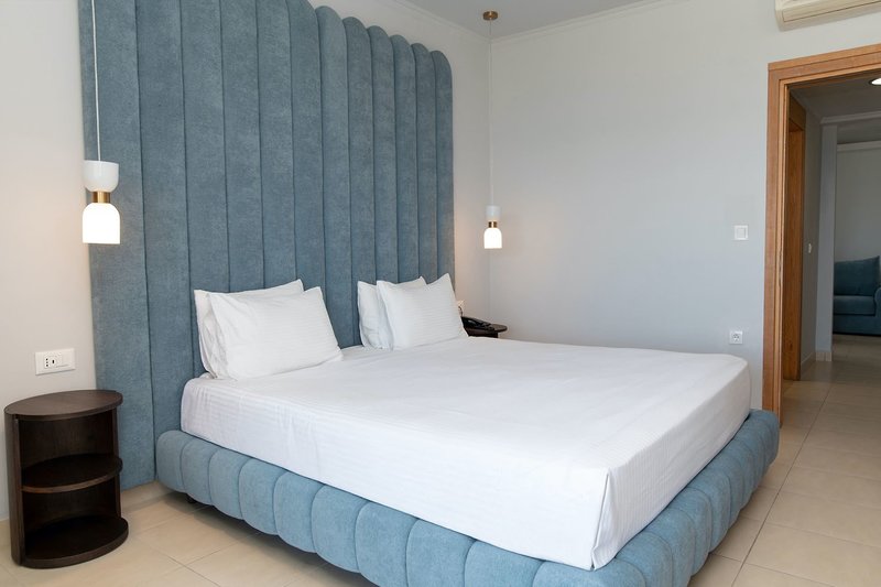 Grand Blue Suite Meerblick renoviert: Verfügen bei gleicher Ausstattung wie die Juniorsuite über Smart-TVs im Schlafzimmer und im Wohn-/Schlafraum, Nespresso-Maschine (inkl. Auffüllung alle zwei Tage) sowie Balkon oder Terrasse mit Meerblick (J2M). Außerdem erhalten Gäste dieser Zimmerkategorie ab einem Mindestaufenthalt von 5 Nächten einen kostenfreien Mietwagen für einen Tag sowie bei Ankunft mit Softdrinks gefüllter Minikühlschrank.