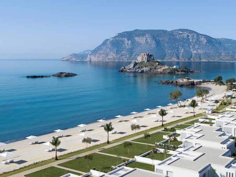 Lage & Umgebung Das Resort liegt an einer wunderschönen Bucht in sehr ruhiger Umgebung im Ort Kefalos im Südwesten der Insel Kos, direkt am hoteleigenen Sandstrand. Die Fahrtzeit nach Kos Stadt dauert ca. 45 Minuten.