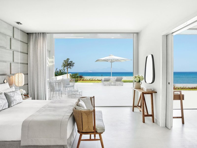 - Egy hálószobás lakosztály saját kerttel, tengerre néző kilátással (SUM1), nemdohányzó szoba, a melléképületben, tengerre néző, kb. 58 m², a szobatípusban található szobák száma: 2, elrendezése a következő: nappali, 1 hálószoba, 1 king size ágy, 1 kanapéágy, 1 pótágy, babaágy: ingyenes, kérésre, légkondicionáló: ingyenes, hideg, meleg, padló: járólap, széf: ingyenes, vasaló, vasalódeszka, Nespresso kávéfőző, kávé-/teafőző, vízforraló, minibár: ingyenes, üdítők: ingyenes, víz: ingyenes, alkoholos italok: ingyenes, minibár feltöltés: naponta, telefon, internet: WLAN/WiFi: ingyenes, televízió: síkképernyős, a nappaliban, a hálószobában, német csatornák, műholdas TV, szobaszerviz: naponta 24 órában, ingyenes, takarítás: naponta, ingyenes, esőztető zuhany, fürdőkád, WC, fürdőköpeny: ingyenes, papucs: ingyenes, hajszárító, kozmetikai tükör, terasz: nyugágyakkal, ülősarokkal, saját kerttel