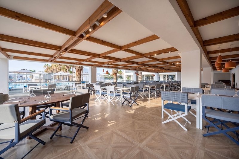 főépületben tágas recepció, teraszos előcsarnok, műholdas TV-sarok és a főétterem található. Ezen kívül három különleges étterem is rendelkezésre áll (foglalás szükséges), köztük egy görög taverna este, egy olasz étterem este és a Mediterrán Étterem, amely ebédidőben tart nyitva. Az étkezési lehetőségeket egy bár teszi teljessé.
