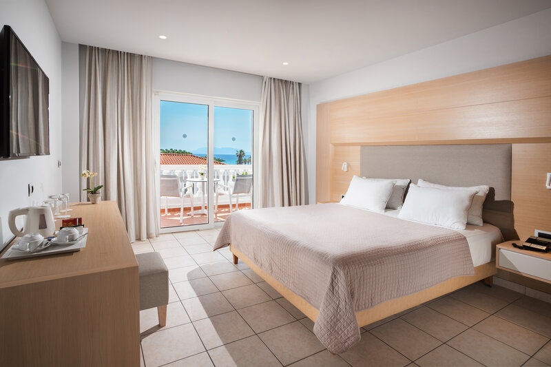 Die Standard-Zimmer verfügen über ein Bad oder Dusche/WC mit Föhn, Sat.-TV, Telefon, Klimaanlage, Safe, Minikühlschrank, Internetzugang und Balkon oder Terrasse. Wahlweise stehen diese Zimmer auch mit direktem oder seitlichem Meerblick oder Gartenblick zur Verfügung. Die Economy-Zimmer verfügen über die gleiche Ausstattung mit Gartenblick sind jedoch in ihrer Anzahl begrenzt buchbar. Die Juniorsuiten verfügen über die gleiche Ausstattung wie die Standard-Zimmer jedoch mit einem separaten Schlafbereich, direktem Meerblick oder Gartenblick. Die geräumigeren Zimmer im Maisonette-Stil erstrecken sich über 2 Etagen und sind bei sonst gleicher Ausstattung wie die Juniorsuiten buchbar.