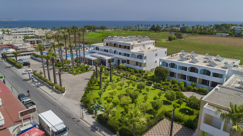 Das Hotel liegt ca. 200 m vom Kies-/Sandstrand entfernt. Das Ortszentrum von Kos, mit vielzähligen Einkaufs- und Unterhaltungsmöglichkeiten, erreichen Sie nach ca. 11 km. Der Flughafen von Kos liegt in ca. 15 km Entfernung.