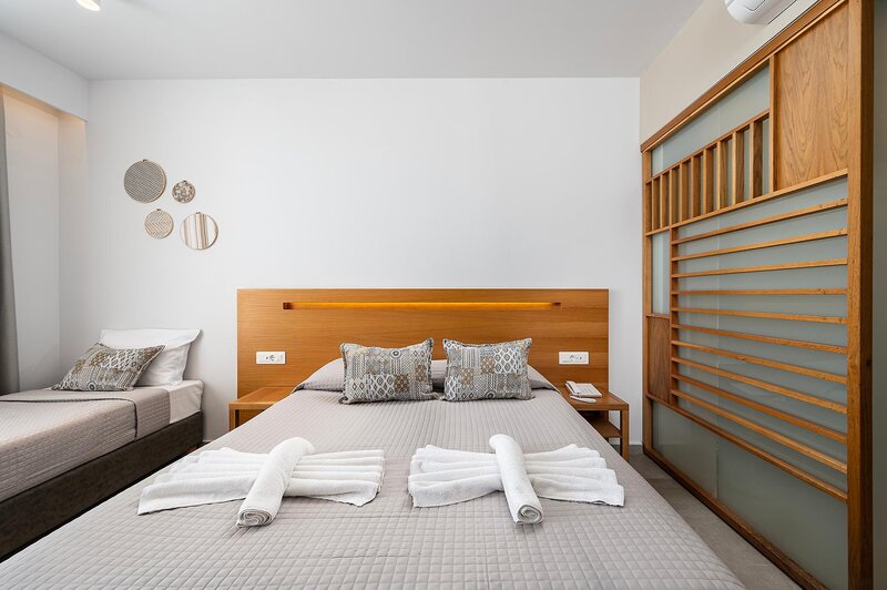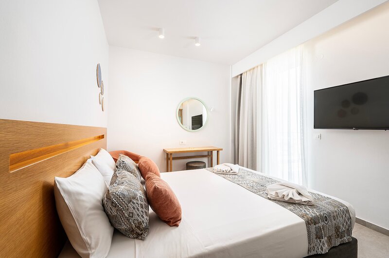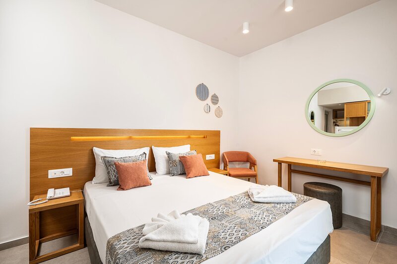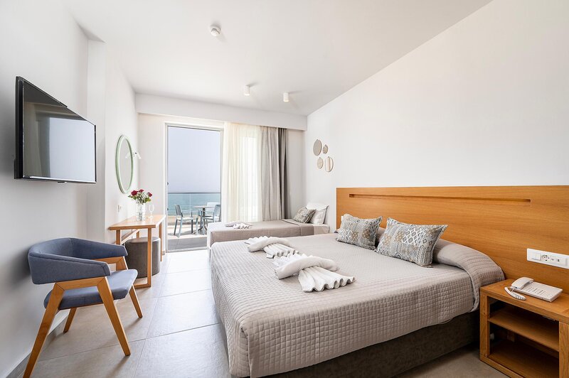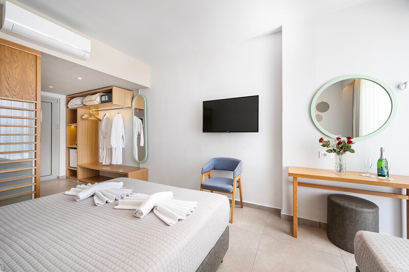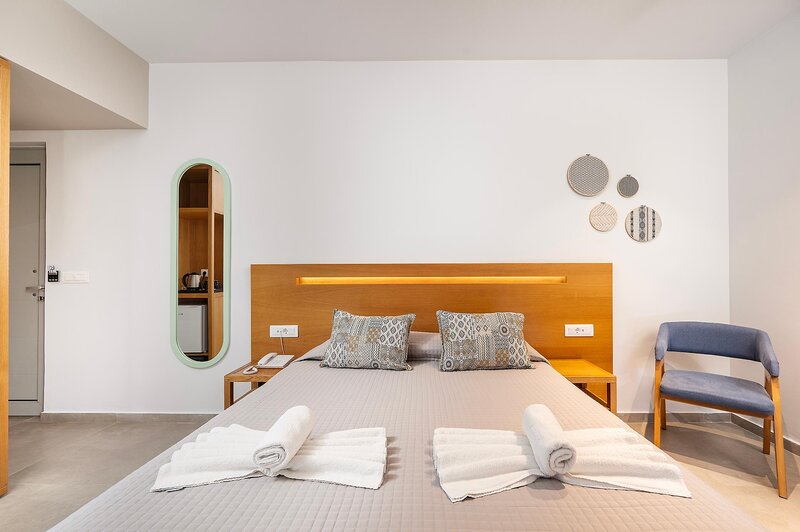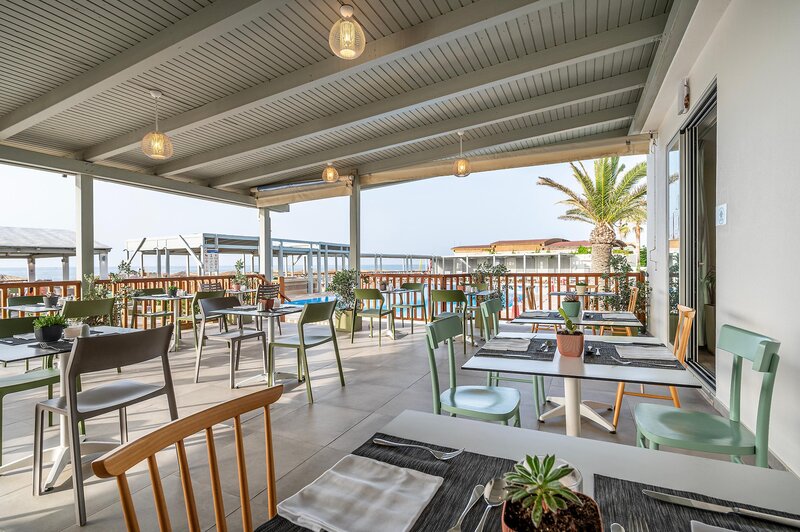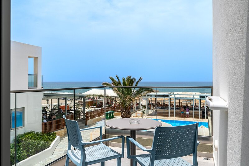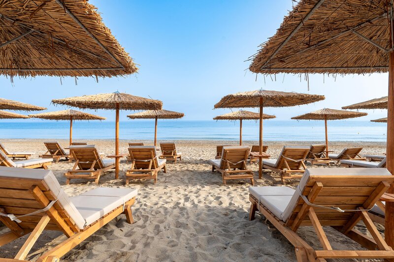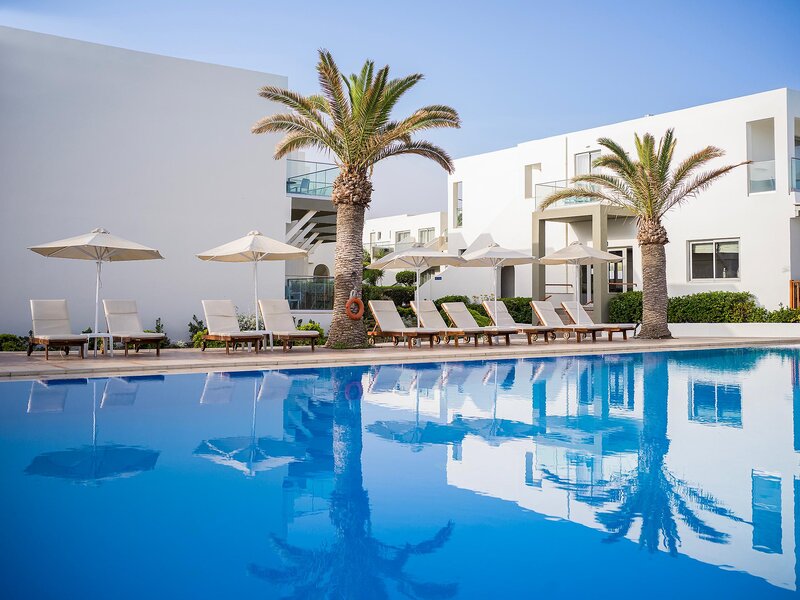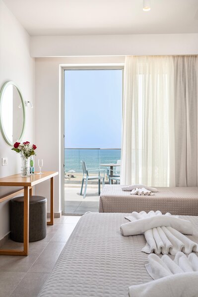 Das Hotel liegt am Strand und befindet sich in Adele. Das Ortszentrum von Rethymnon erreichen Sie nach ca. 6 km. Der Flughafen von Heraklion liegt in ca. 75 km Entfernung, der von Chania in ca. 70 km.