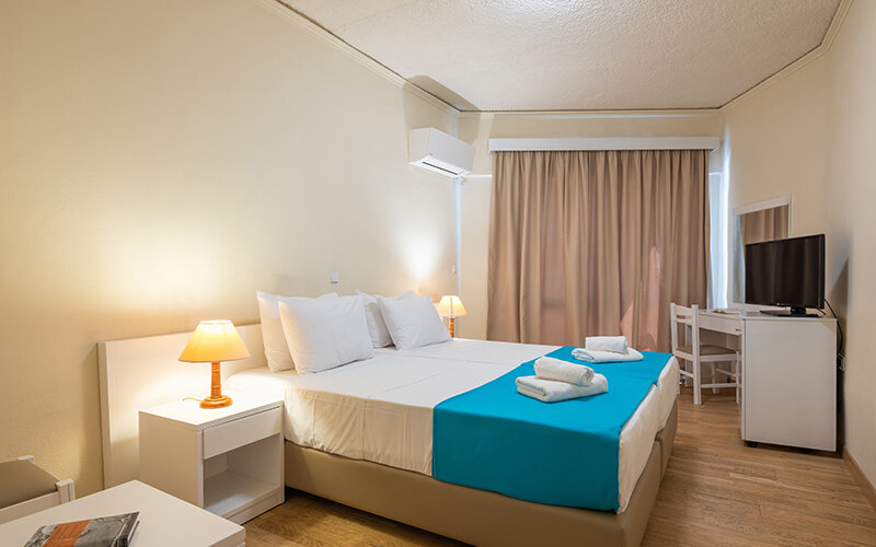 Die Doppelzimmer Superior bieten: Bad oder Dusche/WC, Klimaanlage, Sat.-TV, Telefon, Minikühlschrank, Fön und Balkon oder Terrasse. Diese sind mit Gartenblick, seitl. Meerblick oder Meerblick buchbar. Die Doppelzimmer Economy sind in begrenzter Anzahl verfügbar und bieten keinen Balkon oder Terrasse. Die Familienzimmer Superior sind bei gleicher Ausstattung wie die Doppelzimmer Superior etwas geräumiger.