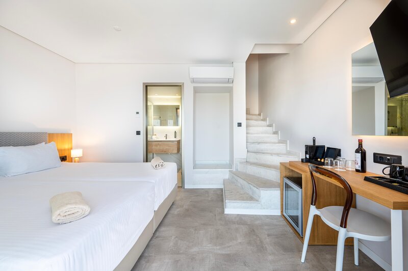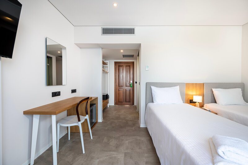 Die komfortablen Doppelzimmer verfügen über Bad oder Dusche/WC, Föhn, Klimaanlage, Telefon, Sat.-TV, Minikühlschrank, Mietsafe, Balkon oder Terrasse und sind wahlweise zur Landseite oder mit Meerblick buchbar. Economy-Zimmer sind Doppelzimmer zur Landseite ohne Balkon oder Terrasse. Die geräumigeren Familienzimmer mit Meerblick verfügen bei sonst gleicher Ausstattung wie die Doppelzimmer zusätzlich über einen Wasserkocher und sind wahlweise auch im Maisonette-Stil buchbar. Juniorsuiten mit Meerblick bieten zusätzlich zur Ausstattung der Doppelzimmer eine Sitzecke, Kaffee-/Teezubereitungsmöglichkeit und Bademäntel. Die exklusiven Suiten mit Meerblick sind mit einem separaten Schlafraum ausgestattet und bieten zusätzlich zur Ausstattung der Juniorsuiten eine Minibar, die täglich mit Wasser, Softgetränken und Bier aufgefüllt wird. Die großen Suiten DeLuxe mit Meerblick sind mit einem weiteren Schlafraum ausgestattet. Zudem sind bei Buchung einer Suite oder Suite DeLuxe die unbegrenzte Nutzung des a-la-carte Restaurants sowie täglich frische Badetücher inklusive. Einzelzimmer sind Doppelzimmer zur Landseite zur Alleinnutzung.