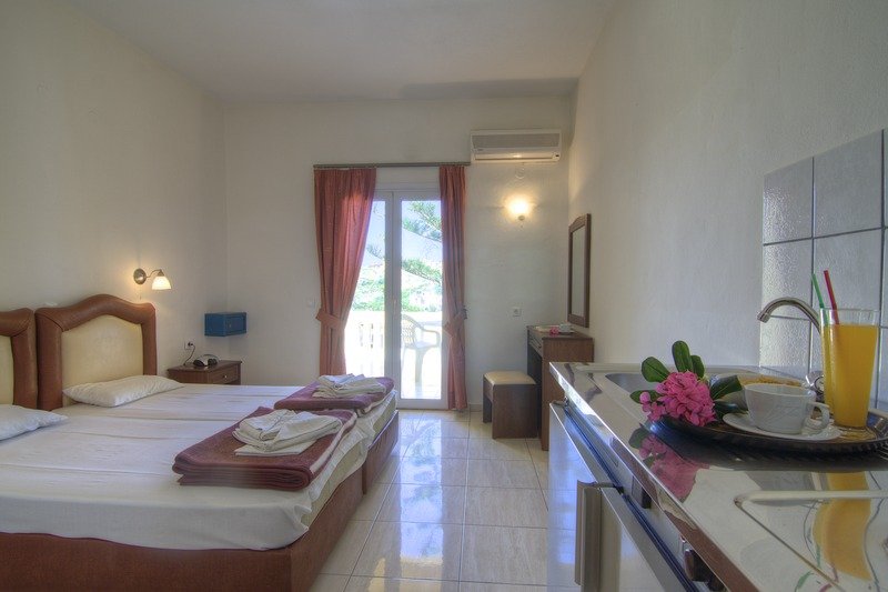 stúdiók kombinált nappali/hálószoba, konyhasarok, kád vagy zuhanyzó/WC, hajszárító, légkondicionáló, WiFi (ingyenes), mini hűtőszekrény, bérelhető széf és erkély vagy terasz található. Az egy hálószobás apartmanok külön hálószobával rendelkeznek.