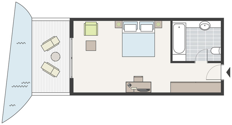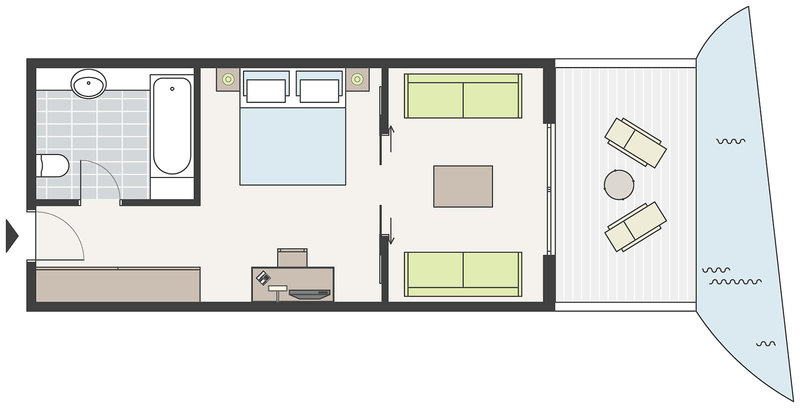 - Family room Open Plan or Sliding door (FZX1), Familienzimmer, im Nebengebäude, Landblick, ca. 26 m², letzte Komplettrenovierung 2015, Gesamtanzahl der Räume in diesem Zimmertyp: 1, Aufteilung wie folgt: kombiniertes Wohn-/Schlafzimmer, 1 Doppelbett, 2 Schlafsofas (0,8x1,8cm), Klimaanlage: zentral gesteuert, Fußboden: Parkett, Safe: gegen Gebühr, Kühlschrank: ohne Gebühr, Kaffee-/Teezubereiter, Wasserkocher, Telefon, Internet: WLAN/WiFi: ohne Gebühr, Fernseher: Flatscreen, Sat-TV, Badewanne, WC, Föhn, Balkon oder Terrasse: mit Sitzgelegenheit