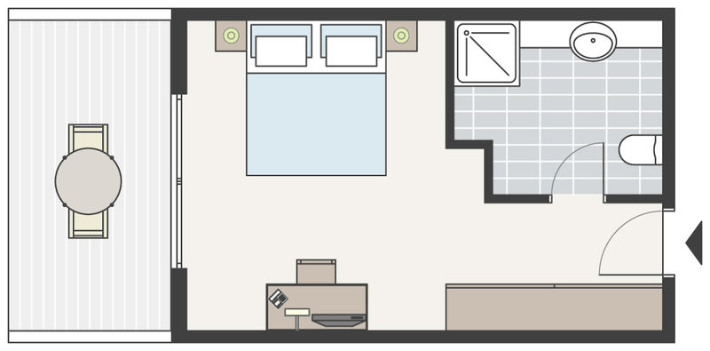 - Twin 4 (DZX2), Háromágyas szoba, a főépületben, vidéki kilátással, kb. 22-24 m², utolsó teljes felújítás 2015-ben, ilyen típusú szobák száma: 1, elrendezése a következő: 1 hálószoba, 2 egyszemélyes ágy, 2 kanapéágy (74x170cm), légkondicionáló: központilag szabályozott, padlóburkolat: parketta, széf: felár ellenében, íróasztal, hűtőszekrény: ingyenes, kávé-/teafőző, vízforraló, telefon, internet: Wi-Fi: ingyenes, televízió: síkképernyős, műholdas TV, fürdőkád vagy zuhanyzó, WC, hajszárító, erkély vagy terasz: ülősarokkal