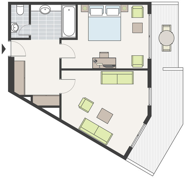 - One Bed room Suite (SUX1), Suite, im Hauptgebäude, Landblick, ca. 45 - 47 m², letzte Komplettrenovierung 2015, Gesamtanzahl der Räume in diesem Zimmertyp: 2, Aufteilung wie folgt: kombiniertes Wohn-/Schlafzimmer, 1 Schlafzimmer, 1 Doppelbett, 2 Schlafsofas (0,8x1,8cm), Babybett: ohne Gebühr, Klimaanlage: zentral gesteuert, Fußboden: Parkett, Safe: gegen Gebühr, Kühlschrank: ohne Gebühr, Kaffee-/Teezubereiter, Wasserkocher, Telefon, Internet: WLAN/WiFi: ohne Gebühr, Fernseher: Flatscreen, Sat-TV, Badewanne oder Dusche, WC, Föhn, Balkon oder Terrasse: mit Sitzgelegenheit