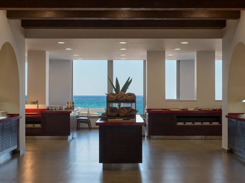 - Hauptrestaurant „MINOS“: Küche: griechisch, international, landestypisch, mediterran, regional, Fisch/Meeresfrüchte, Grillgerichte, glutenfreie Gerichte: Anfrage notwendig, Reservierung nicht notwendig, Kinderbuffet: Anfrage & Reservierung nicht notwendig, lactosefreie Gerichte: Anfrage notwendig, Reservierung nicht notwendig, vegetarische Gerichte: Anfrage notwendig, Reservierung nicht notwendig, vegane Gerichte: Anfrage notwendig, Reservierung nicht notwendig, Buffet, Showcooking, Reservierung notwendig, Mai - Oktober, täglich 07:30 Uhr - 10:30 Uhr, 12:30 Uhr - 14:30 Uhr und 19:00 Uhr - 21:30 Uhr, klimatisierbar, mit Terrasse, Kinderhochstuhl, angemessene Kleidung erwünscht