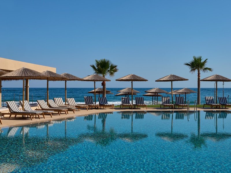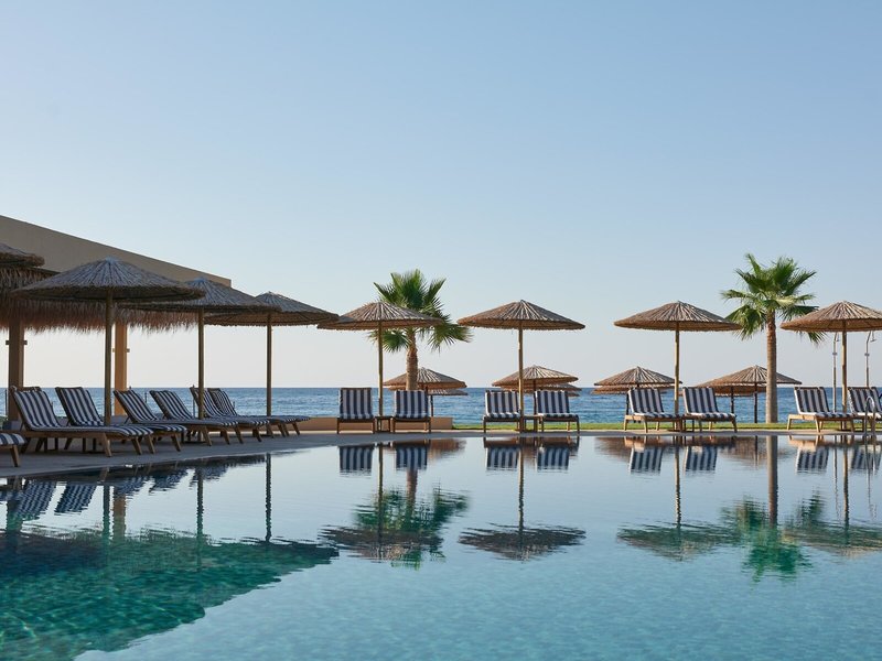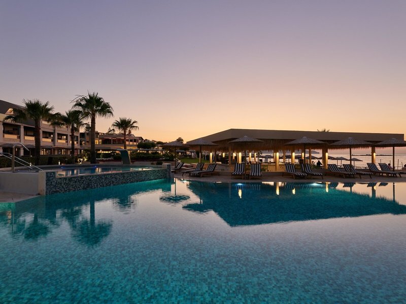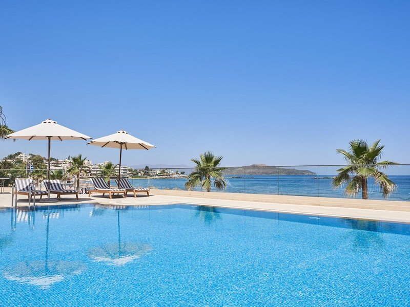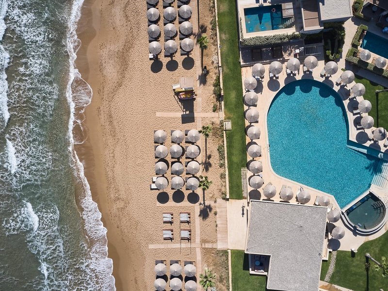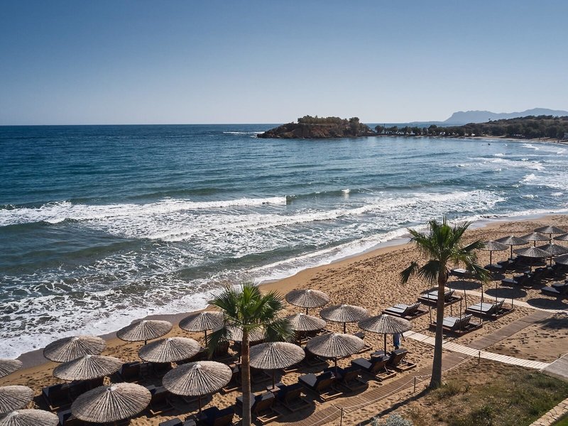 Lage & Umgebung Direkt am langen flach abfallenden Sandstrand gelegen sowie an der belebten Küstenstraße, die nach Chania führt. Agioi Apostoli mit Einkaufsmöglichkeiten ist ca. 2 km, die Altstadt von Chania mit malerischem, venezianischem Hafen ca. 4,5 km entfernt. Transferzeit nach Chania: ca. 40 Minuten, Transferzeit nach Heraklion: ca. 3 Std.