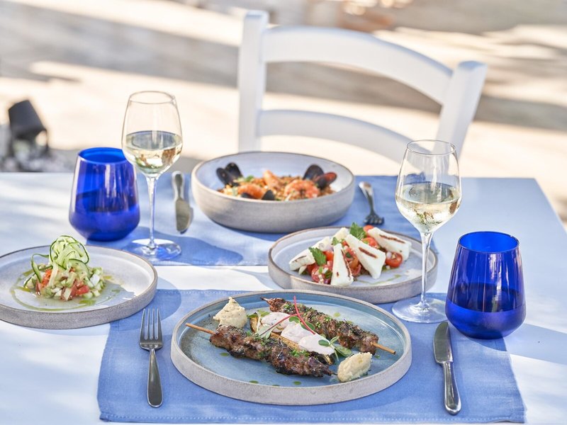 - Spezialitätenrestaurant „Glaros Greek Restaurant“: Küche: griechisch, landestypisch, mediterran, regional, Fisch/Meeresfrüchte, Grillgerichte, glutenfreie Gerichte, lactosefreie Gerichte, vegetarische Gerichte, vegane Gerichte, à la carte, Menüwahl, Anfrage & Reservierung notwendig, gegen Gebühr, bei All Inclusive inklusive, mehrmals pro Woche 19:00 Uhr - 22:00 Uhr und 13:00 Uhr - 15:00 Uhr, am Strand