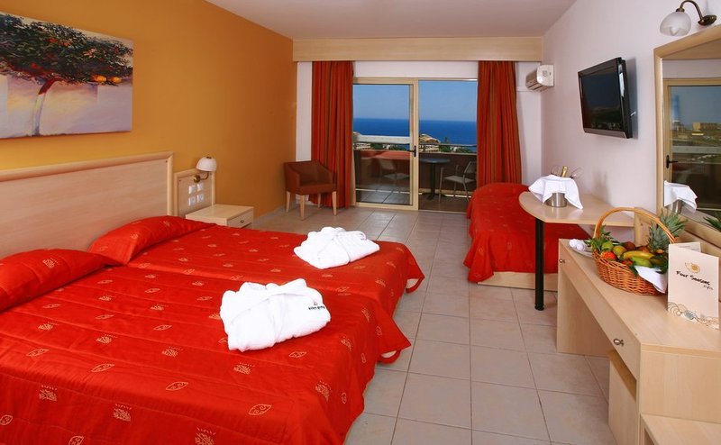 Alle Doppelzimmer verfügen über Bad oder Dusche/WC mit Föhn, Klimaanlage,Telefon, Sat.-TV, WLAN, Minikühlschrank, Minibar (auf Nachfrage), Safe (gegen Gebühr), Balkon und sind mit Meerblick. Die Executive-Zimmer sind bei gleicher Ausstattung etwas geräumiger. Die Economy-Zimmer verfügen über die gleiche Ausstattung wie die Doppelzimmer, sind jedoch in ihrer Anzahl begrenzt buchbar. Annex-Zimmer verfügen über die gleiche Ausstattung und liegen in den Nebengebäuden ca. 50-250m entfernt. Die Familienzimmer mit Meerblick sind bei sonst gleicher Ausstattung wie die Zimmer geräumiger. Diese sind auch als Familienzimmer Annex (ohne Meerblick) im Nebengebäude buchbar. Die Club-Bungalows befinden sich ebenfalls in den Nebengebäuden.